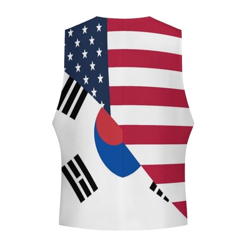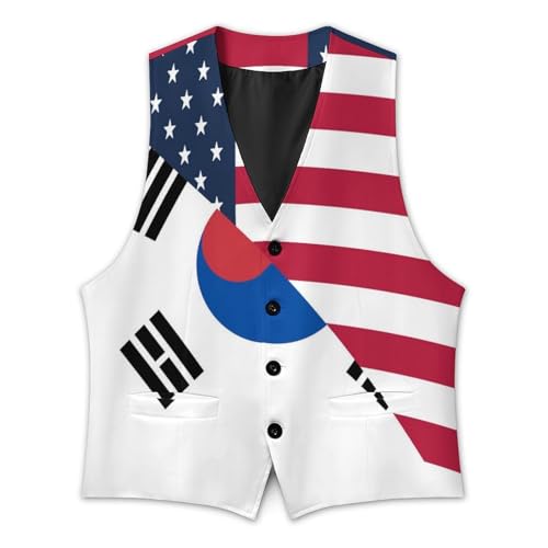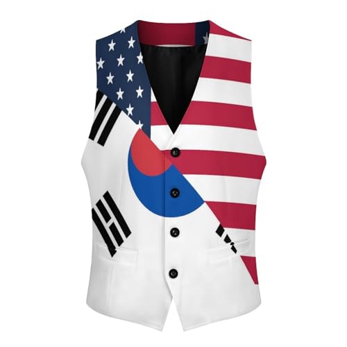 USA And South Korea Flag Suit Vest for Men Slim Fit Sleeveless Jacket V Neck Business Waistcoat Button Up Dressy Top 4