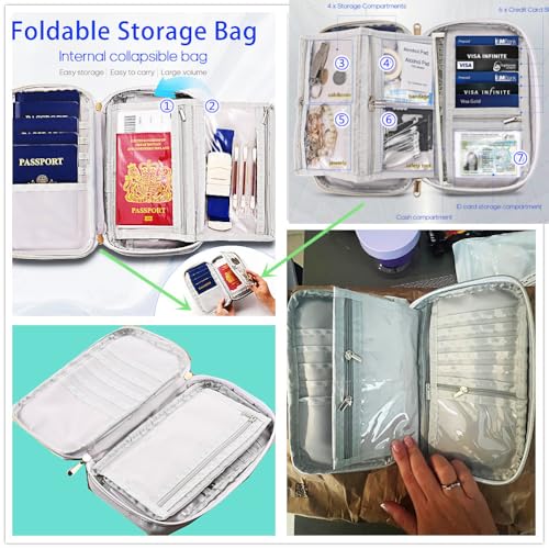 • 【 3-Layer design &Big Storage Capacity 】2①The first layer can store 6 passports inside and outside. The second layer has 6 foldable zipper pockets that can hold small travel items such as coins, keys, vaccine cards, or some small emergency supplies. The third layer has 5 card slots and a boarding pass slot, a cash zipper pocket, and a PVC pocket. The purpose of this design is to allow you and your family to carry as many items as possible in the least space.