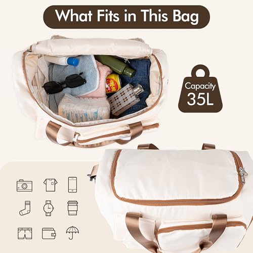 • Roomy Capacity:The large duffel bag is a space-saving superstar! When folded, it measures a tiny 26*5*21cm(10.2*2*8.2inches)—perfect for storing in small spaces. But don’t let its compact size fool you! When expanded to its full size of 47*25*30cm(18.5*9.8*11.8inches), it offers a spacious 35L capacity. This overnight bag is your go-to for weeding trips,weekend sleepover, gym gear, or even as a backup bag for your travels.