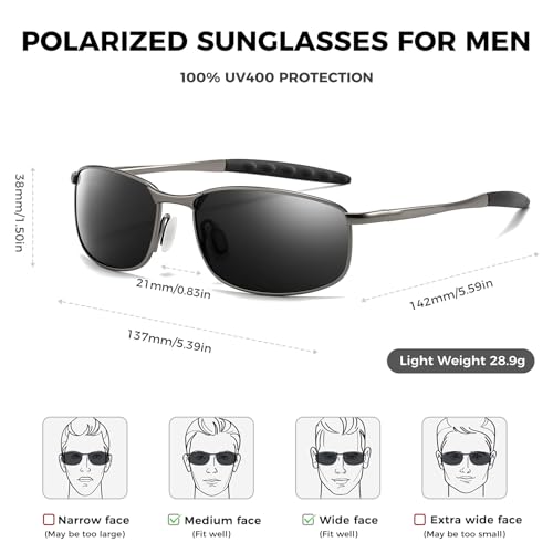 • 😎Sleek Design, Perfect Fit for Small to Medium Faces: These men’s sunglasses combine style and comfort with a streamlined look that flatters small to medium face shapes. With a 137mm frame width and 38mm lens height, they’re lightweight and versatile—perfect for everyday wear.