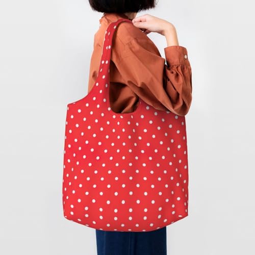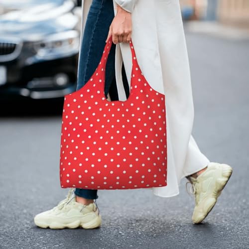 Red And White Polka Dots Print Canvas Tote Bags,Reusable Cloth Bags For Shopping Beach Grocery Trendy 1