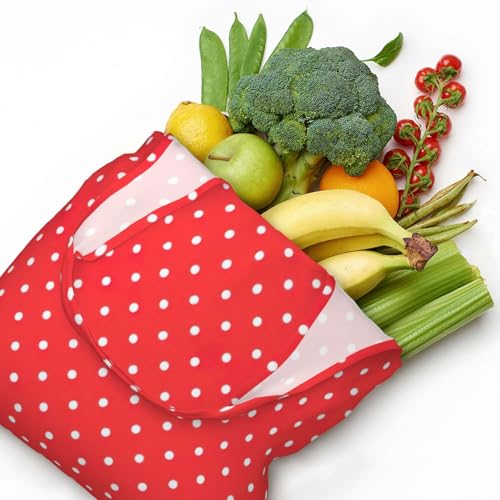 Red And White Polka Dots Print Canvas Tote Bags,Reusable Cloth Bags For Shopping Beach Grocery Trendy 5