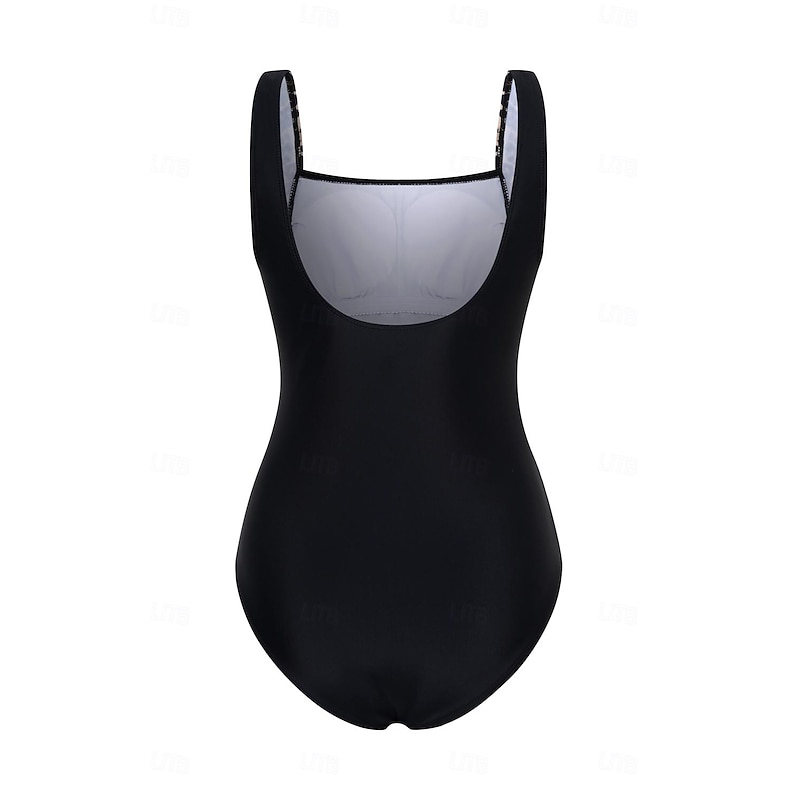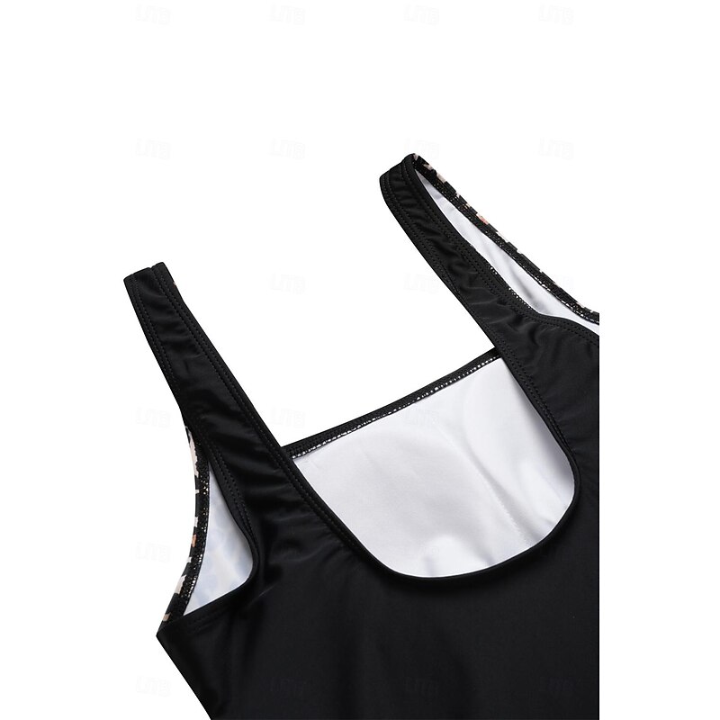 More information about Women's One-Piece Swimsuit Scoop Neck Leopard Print Panels Racerback Ruched Summer Beachwear Quick-Dry Stretch Fabric Full Size Black