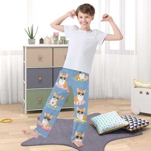 Funny Corgi Dog Boys Long Pants Soft Trousers Elastic Waist Kids Lounge Bottoms with Pockets S-XL 1