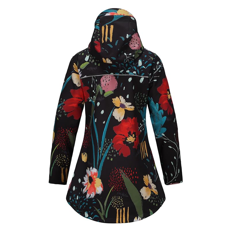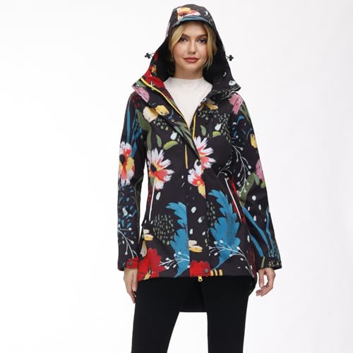 More information about Womens Long Raincoat Waterproof Windbreaker Floral Print Softshell Trench Coat US Size S-2XL