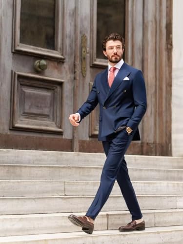 Mens Double Breasted Suit 2 Piece Classic Regular Fit Business Casual Wedding Prom Suits for Men 5