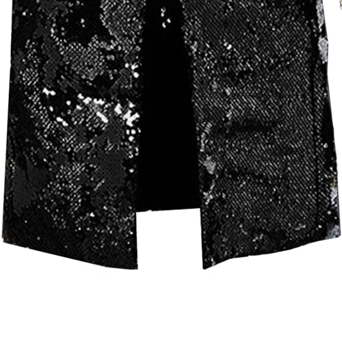Men's Sequin Shiny Long Suit Jacket Open Front Loose Fit Tuxedo Suits Stylish Disco Prom Party Suit Coat 6