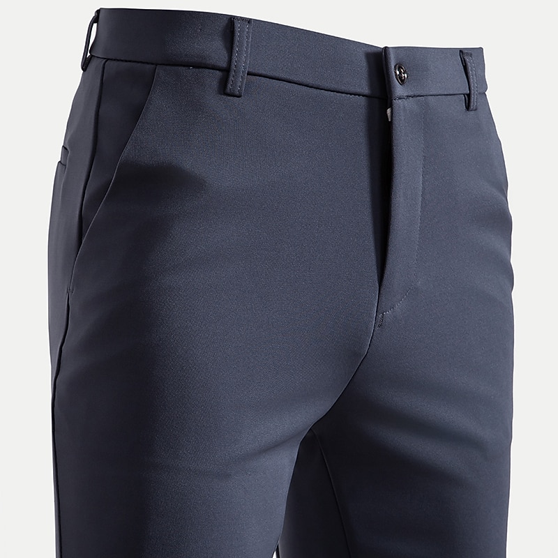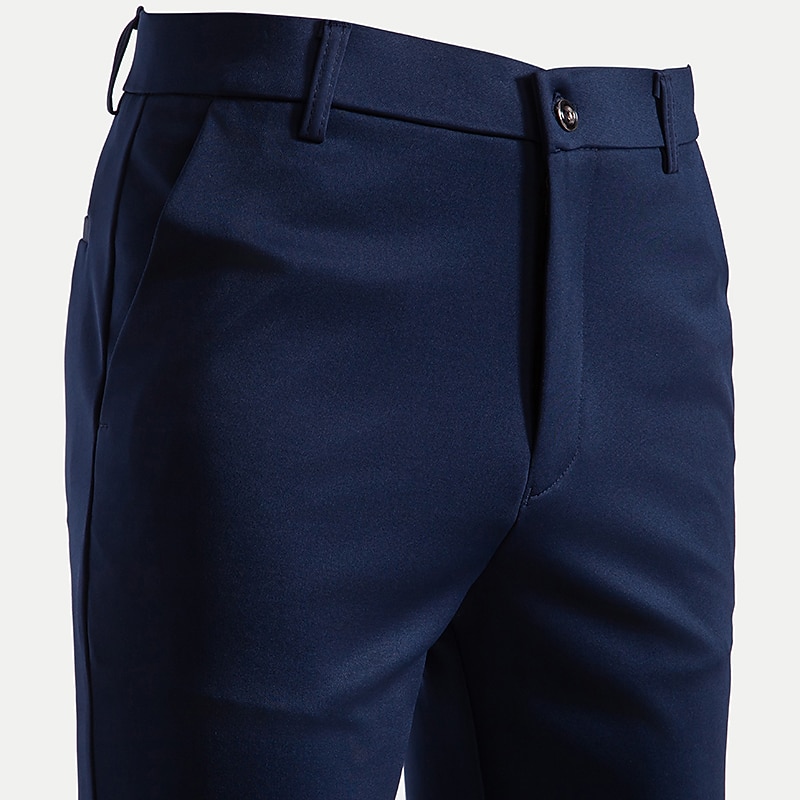 Constructed from a durable blend of 95% polyester and 5% spandex, these men's trousers offer a comfortable fit with a slight stretch. The fabric is both waterproof and wrinkle-resistant, ensuring they remain in pristine condition for any occasion.