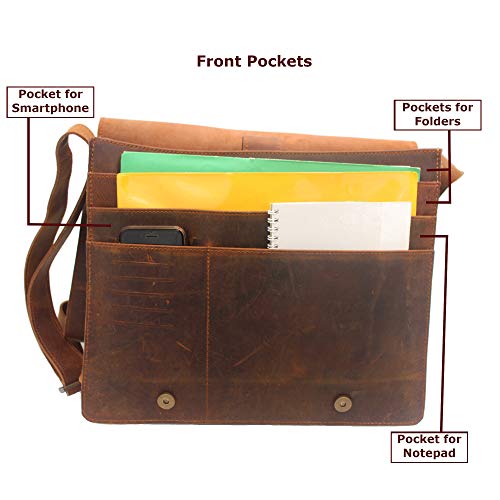 Chelsea Handmade Genuine Leather Crossbody Laptop Messenger Shoulder Bag 14 inch Satchel for Men and Women Crazy Horse Distressed Vintage Brown 5