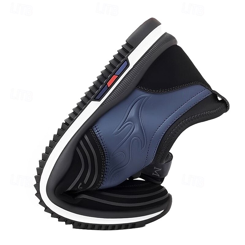 Sporting a dynamic wave pattern on the side, these sneakers stand out with their unique flame design in navy blue and black accents. The lace-up closure ensures a secure fit, while the cushioned insole delivers comfort for extended periods.
