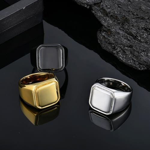 YL Men's Square Signet Rings Titanium Steel High Polished Rings White Gold/Gold/Black Plated Statement Band Wedding Jewelry 6
