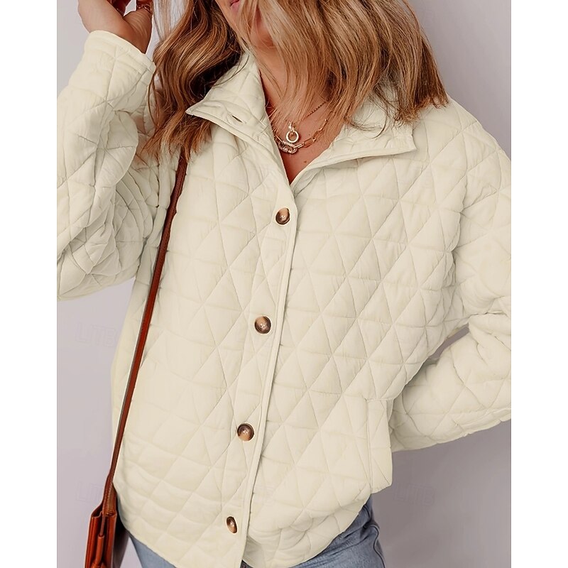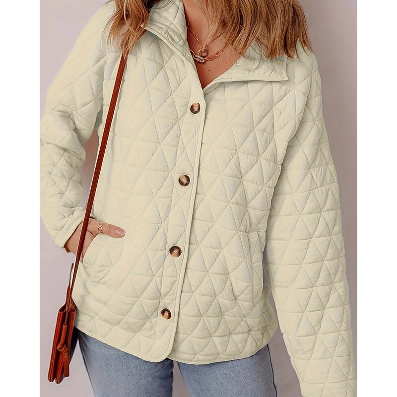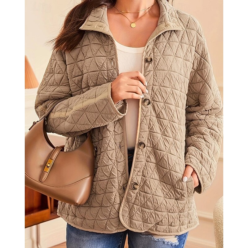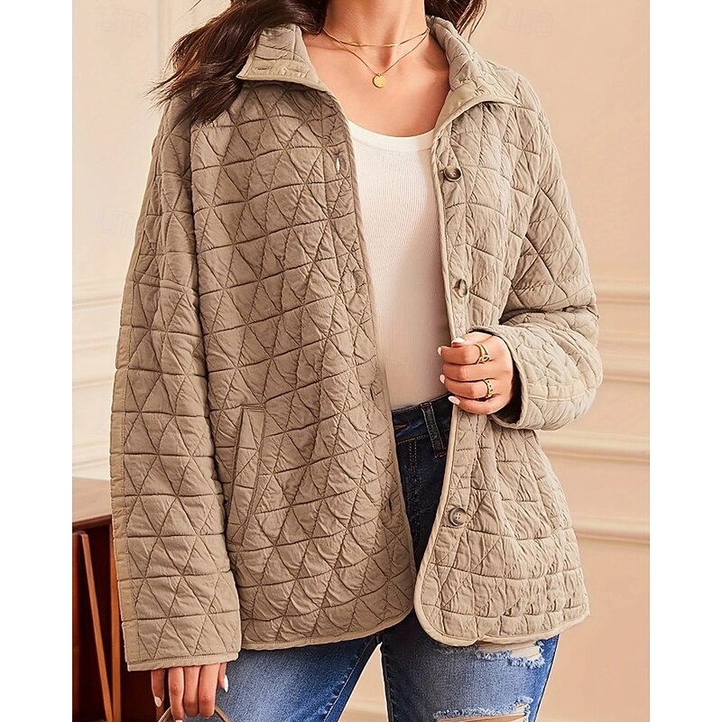 Women's Casual Jacket Warm Comfortable Pocket Buttons Casual Plain Going out Weekend Single Breasted Regular Turndown Regular Fit Long Sleeve Outerwear Navy Black Khaki Fall Winter 24
