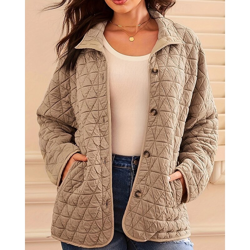 More information about Women's Casual Jacket Warm Comfortable Pocket Buttons Casual Plain Going out Weekend Single Breasted Regular Turndown Regular Fit Long Sleeve Outerwear Navy Black Khaki Fall Winter
