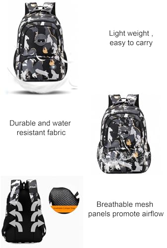 JiaYou Boys Primary School Backpack Large Capacity Trendy Camouflage Elementary Daypack(Black,20 Liters) 5