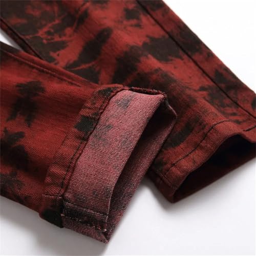 Men Tie and Dye Stretch Denim Jeans Slim Straight Pants Streetwear Trousers 6