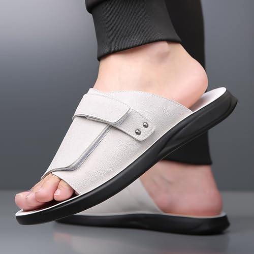 More information about Men'S Leather Platform Slide Sandals With Adjustable Hook And Loop Fashion Round Toe Open Comfortable Slip On Soft Sole Non-Slip Casual Slippers For Daily Beach Walking