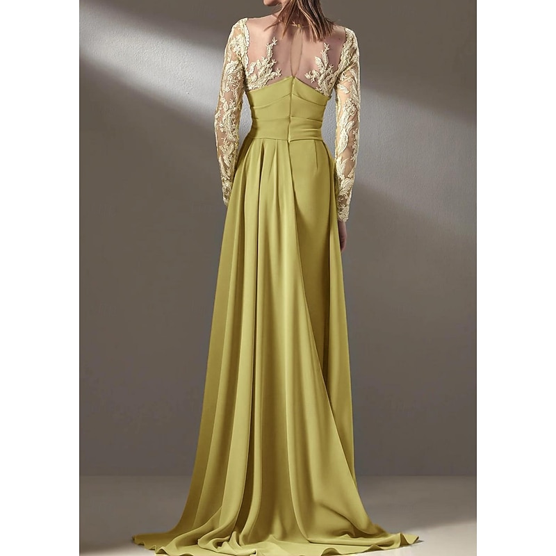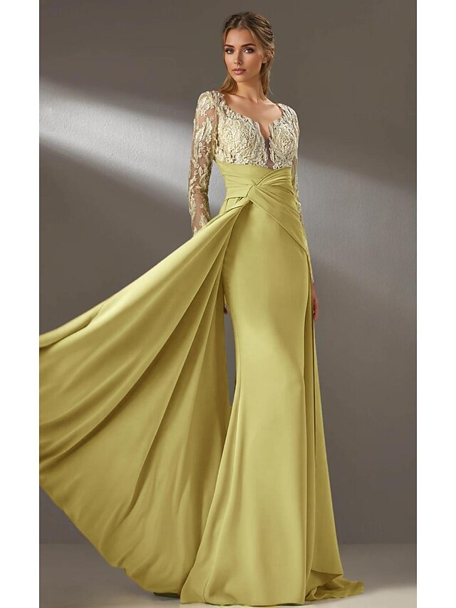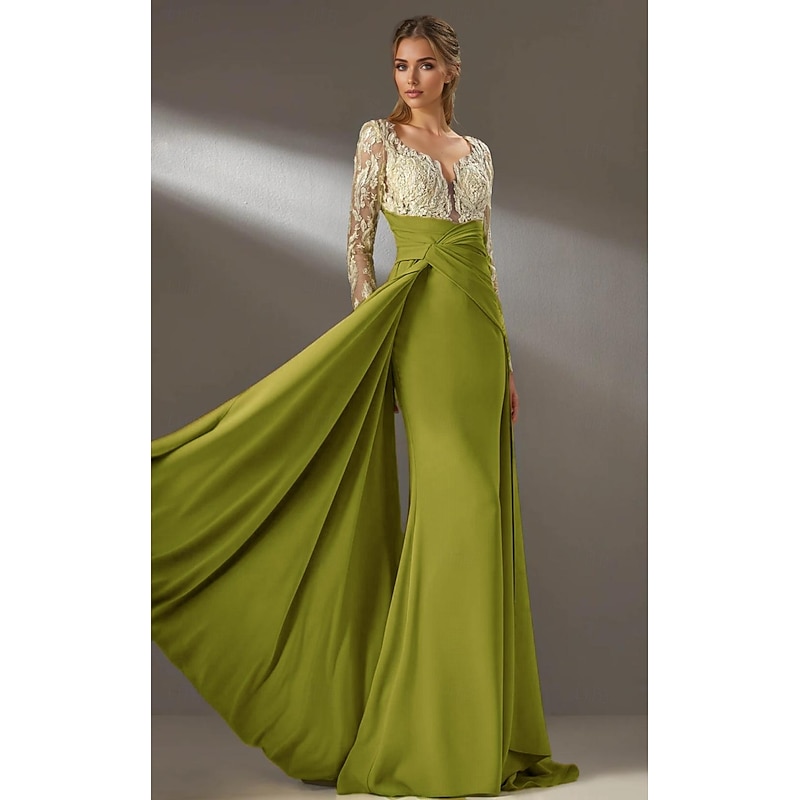 More information about Dress Detachable Sleeve Mermaid / Trumpet Evening Gown Elegant Dress Formal Wedding Sweep / Brush Train Long Sleeve V Neck Chiffon Ruched Detail with Beaded Embroidery Applique