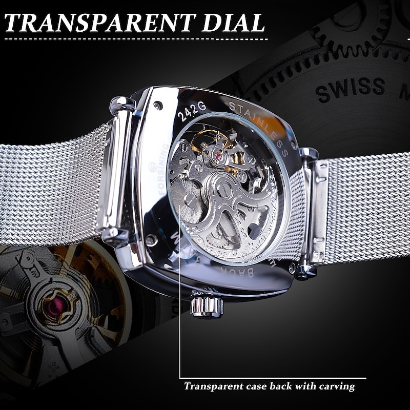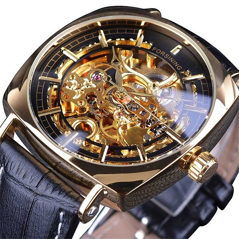 More information about FORSINING Men Mechanical Watch Large Dial Fashion Business Wristwatch Hollow Skeleton Automatic Self-winding Luminous Waterproof Alloy Leather Watch