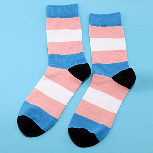 HOT ! JXGZSO 2 Pairs Transgender Pride Flag Socks LGBTQ Gifts Queer Pride Trans Flag Tube Socks Transgender Gift