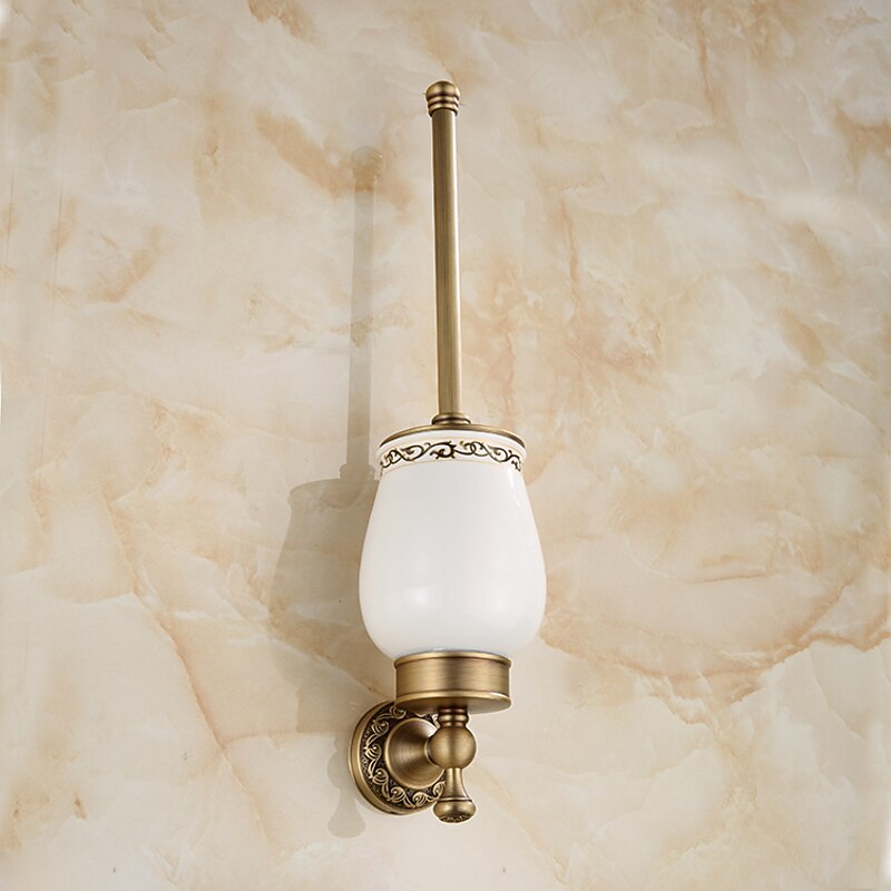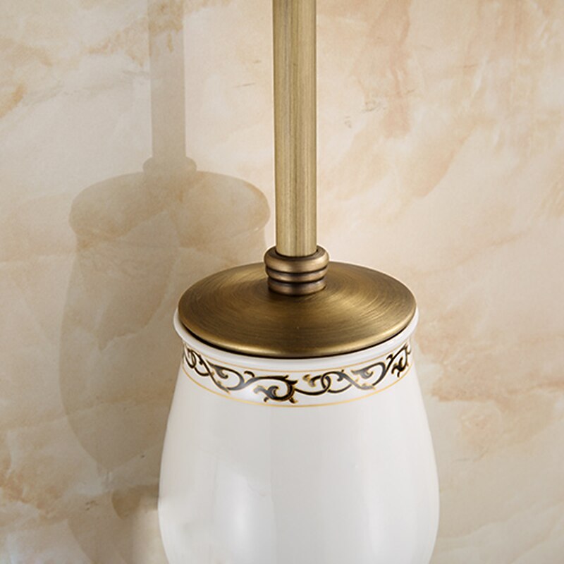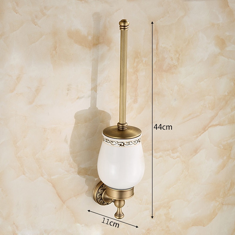HOT ! Toilet Brush with Holder,Antique Brass Ceramics Wall Mounted Rubber Painted Toilet Bowl Brush and Holder for Bathroom