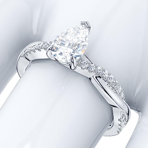 THELANDA Sterling Silver 4-Prong Petite Twisted Vine 0.8CT Teardrop Pear Shape Genuine Moissanite Engagement Ring Promise Bridal Ring 6