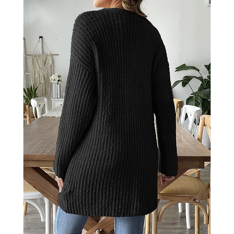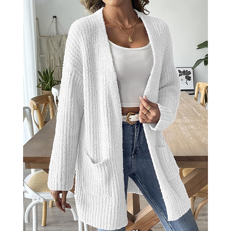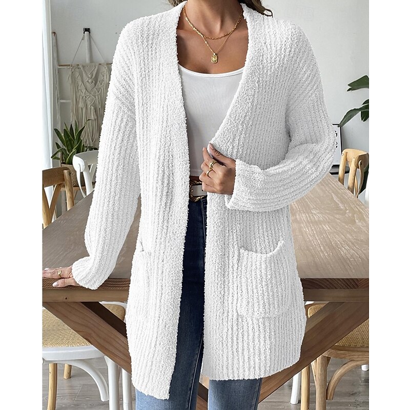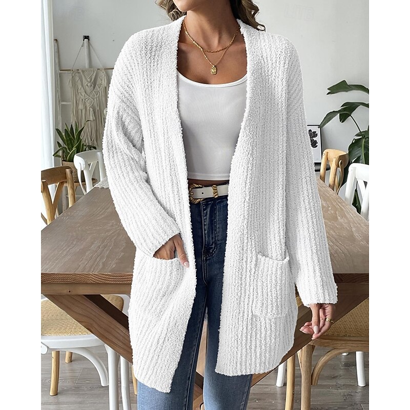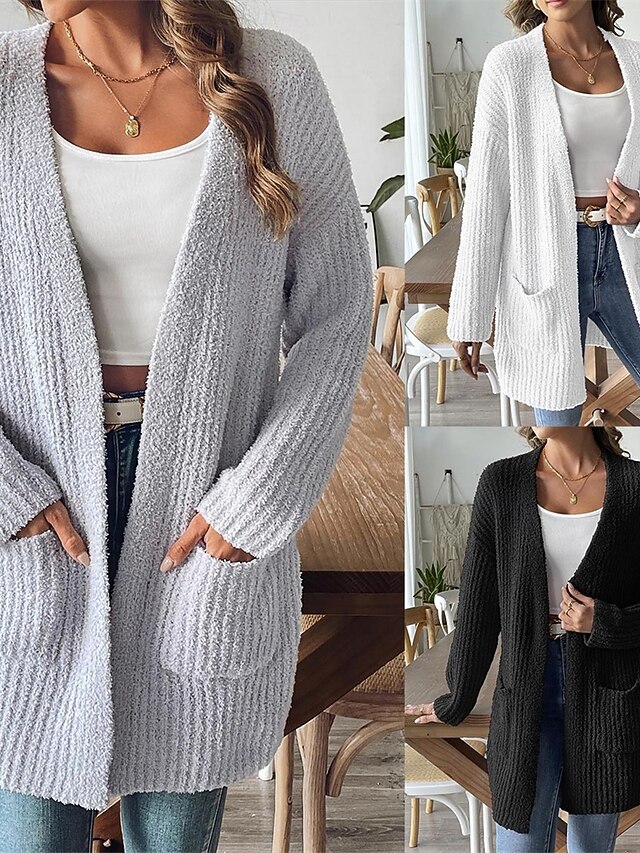 More information about Women's Sweater Cardigan Fashion Streetwear Daily Solid Color Ribbed Open Front Pocket Knitted Long Sleeve Long Tops Knit Holiday Going out Weekend Black White Fall Winter