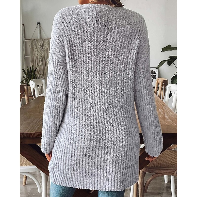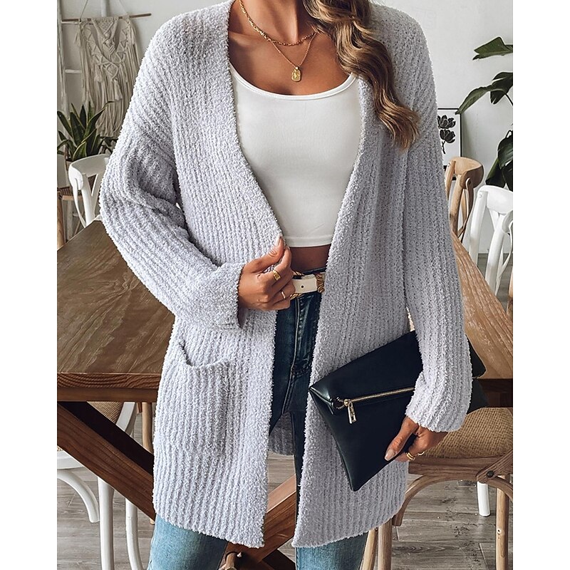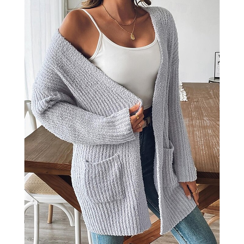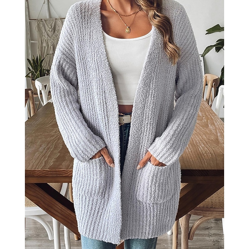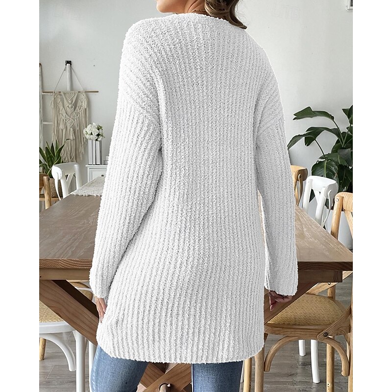 More information about Women's Sweater Cardigan Fashion Streetwear Daily Solid Color Ribbed Open Front Pocket Knitted Long Sleeve Long Tops Knit Holiday Going out Weekend Black White Fall Winter