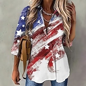 HOT ! Women's Patriotic Shirt Red White And Blue USA National Flag Button Print Red White And Blue Long Sleeve Daily Weekend Streetwear Casual Shirt Collar Regular S