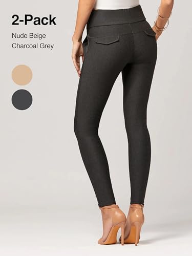 Conceited 2-Pack Stretch Slacks for Women - Wear to Work - Slim Leg Dress Pants with Pockets - Khaki, Charcoal - (Large) 4