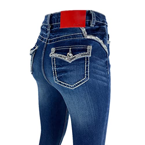 Women's Stretch Embroidered Sequins Stone Crystal Flap Back Pocket Slim Skinny Denim Jeans Pants 6