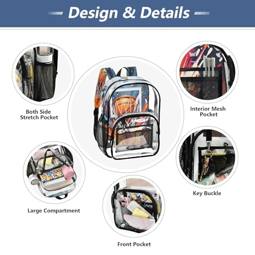 Clear Backpack for School Basketball Hoop Transparent Bookbag for Girls See Through PVC Boy Backpacks 6