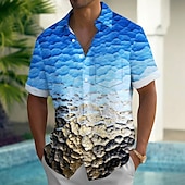 More information about Men's Gradient Ocean Rock Shirt Summer Shirt Button Up Shirt Short Sleeve Fashion Casual Outdoor Vacation Dailywear Summer Spring Turndown 3D Print Collared Shirts Front One Pocket Blue