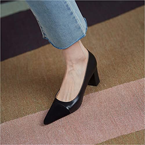 Lutalica W Women's Trendy Pointed Cap Toe Slip On Comfort Two-Toned Chunky High Heel Pumps for Office Evening Wedding 6