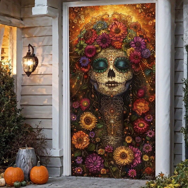 $18.99 - Halloween Door Cover – Day of the Dead Skeleton Couple, Colorful Sugar Skull Design, Outdoor 2025 Halloween Decoration for Bedroom, Living Room, Bathroom. Indoor/Outdoor Holiday Decoration 2025. Shop for cheap Halloween Door Covers online? Buy at lightinthebox.com on sale today!