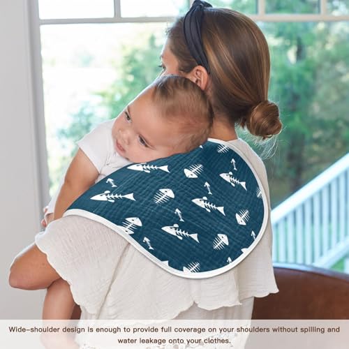 Fish Skeletons Muslin Baby Burp Cloths, 22x11 Inch Soft Absorbent Cotton Burping Rags Baby Washcloths for Newborn Boys Girls, 2 Pack 6