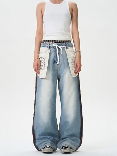 GUOYUXIAO Men's Jeans American Retro Denim Pants with Wide-Leg Casual Straight-Leg Trouser for Men 6