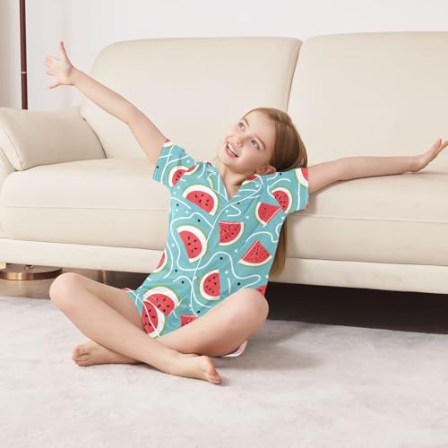 ALAZA Watermelon Slices Blue Satin Pajamas Set Short Sleeve Button Down Sleepwear Summer Pjs 2 Piece 4