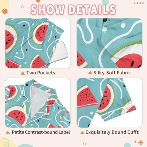 ALAZA Watermelon Slices Blue Satin Pajamas Set Short Sleeve Button Down Sleepwear Summer Pjs 2 Piece 7
