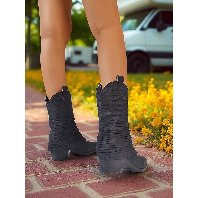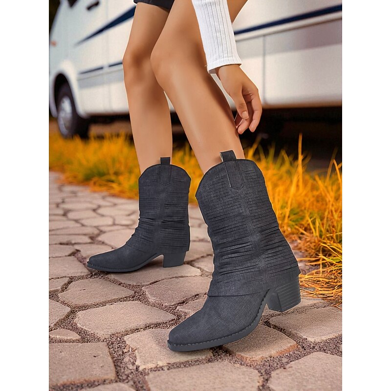 HOT ! Women's Denim Western Cowboy Boots - Fashion Mid-Calf Pointed Toe Pull-On Cowgirl Boots for Rodeo, Country Concerts & Outdoor Festivals