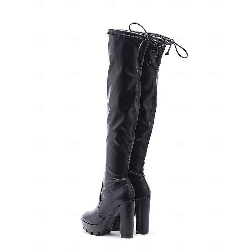 Women's Over-the-Knee Platform Boots with Chunky High Heels and Drawstring Closure, Sexy Thigh-High Style for Clubwear and Parties 4