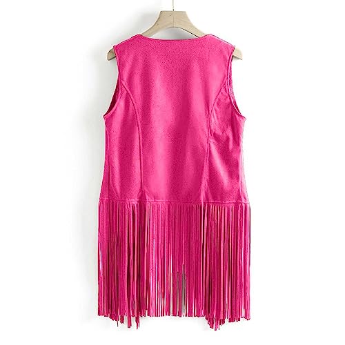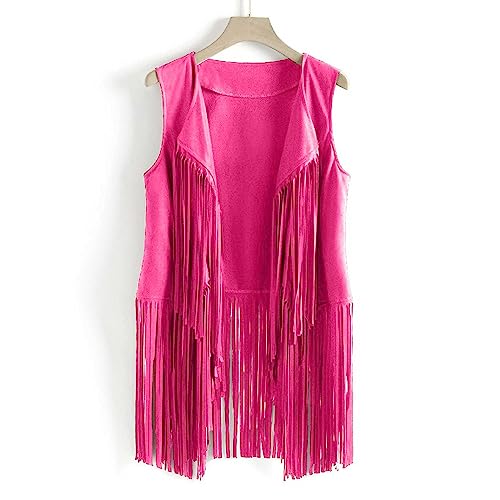 Womens Fringe Vest Coat 70s Hippie Cowgirl Sleeveless Cardigan Western Faux Suede Leather Tassel Outerwear 7