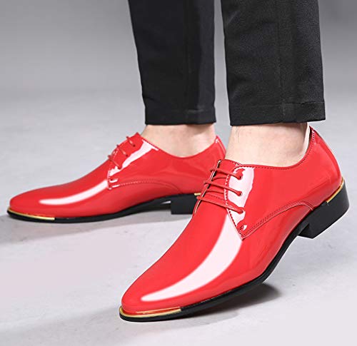 Dress Shoes Men Classic Pointed-Toe Patent Leather Lace-up Formal Oxford Shoes Black Brown Red Grey 7
