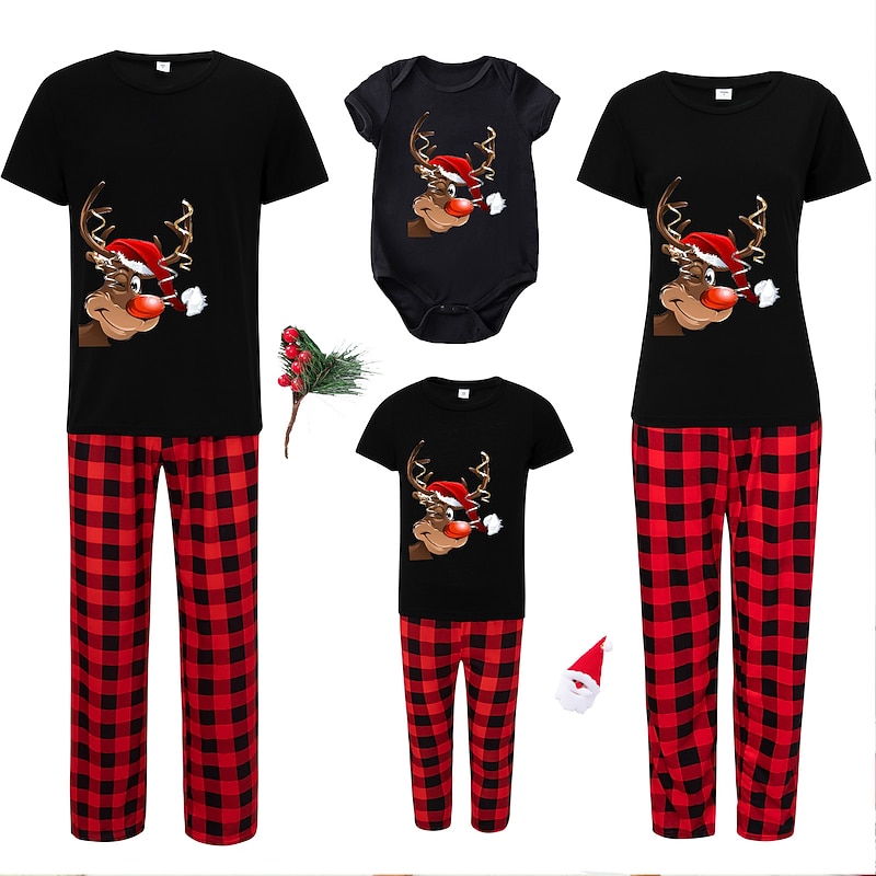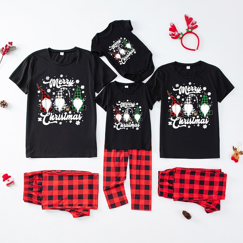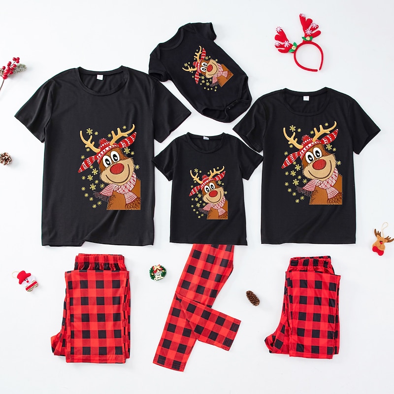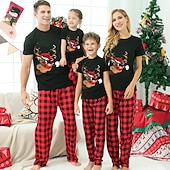 More information about Family Christmas Family Pajamas Pajamas Graphic Plaid Pajamas Cute Christmas Pajamas School Print Colorblock Black White Long Sleeve Mommy And Me Outfits Active Matching Outfits