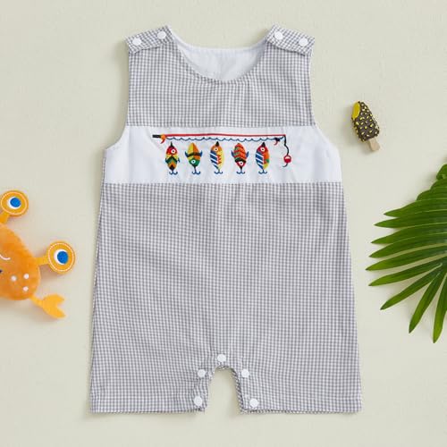 Newborn Infant Baby Boy Summer Clothes Embroidery Plaid Sleeveless Romper Jumpsuit Overall Bodysuit One-Piece Outfit 7