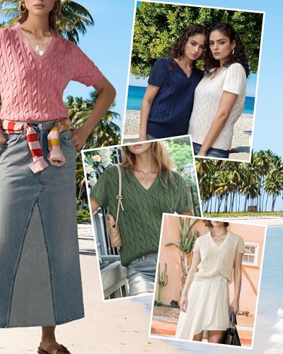 • Features--The sweater T-shirt is tag free and the size tag is on the lower left inner side of the sweater T-shirt when worn.Short sleeve Cable knitted sweaters, solid color,v neck,women's tees, plain pullovers tops, summer basic shirts,fit perfectly and easy to show off body curves without being too clingy.Perfect to wear every single day. it's best choice for all ages women.