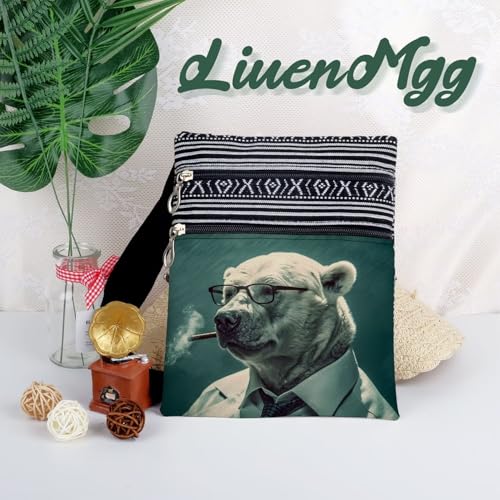 Smoking Polar Bear Messenger Bag Small Ethnic Pattern Printed Adjustable Strap Crossbody Zipper Bag Smoking Polar Bear Phone Bag Wallet Cute Shoulder Handbag for Women 4
