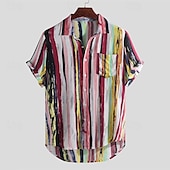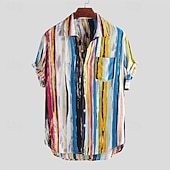 More information about Men's Shirt Summer Shirt Casual Shirt Beach Shirt Button Up Shirt Wine Blue Short Sleeve Color Block Striped Turndown Vacation Holiday Clothing Apparel Polyester Fashion Casual Comfortable
