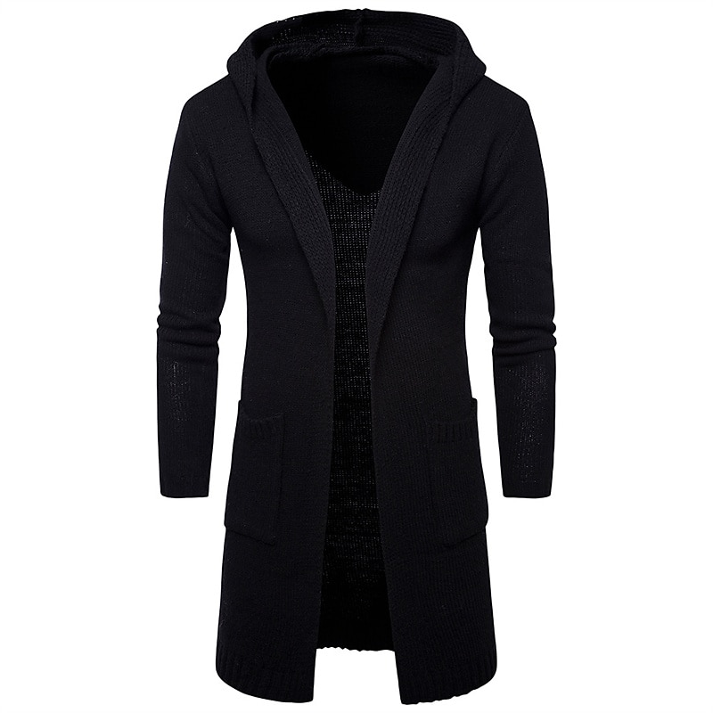 More information about Men's Sweater Cardigan Sweater Sweater Hoodie Ribbed Knit Tunic Knitted Solid Color Hooded Basic Stylish Outdoor Daily Clothing Apparel Winter Fall Black Gray M L XL