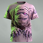 More information about Halloween Men's Optical Illusion Zombies Mummy T Shirt Short Sleeve T shirt 3D Print Crew Neck Shirt Exaggerated Designer Horror Party Street Holiday Pink Blue Green Summer Spring All Seasons