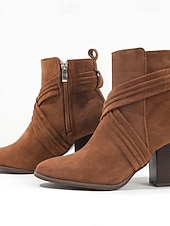 More information about Women's Blue Suede Ankle Boots – Stylish Block Heel Short Booties with Side Zipper for Casual Fall and Winter Outfits